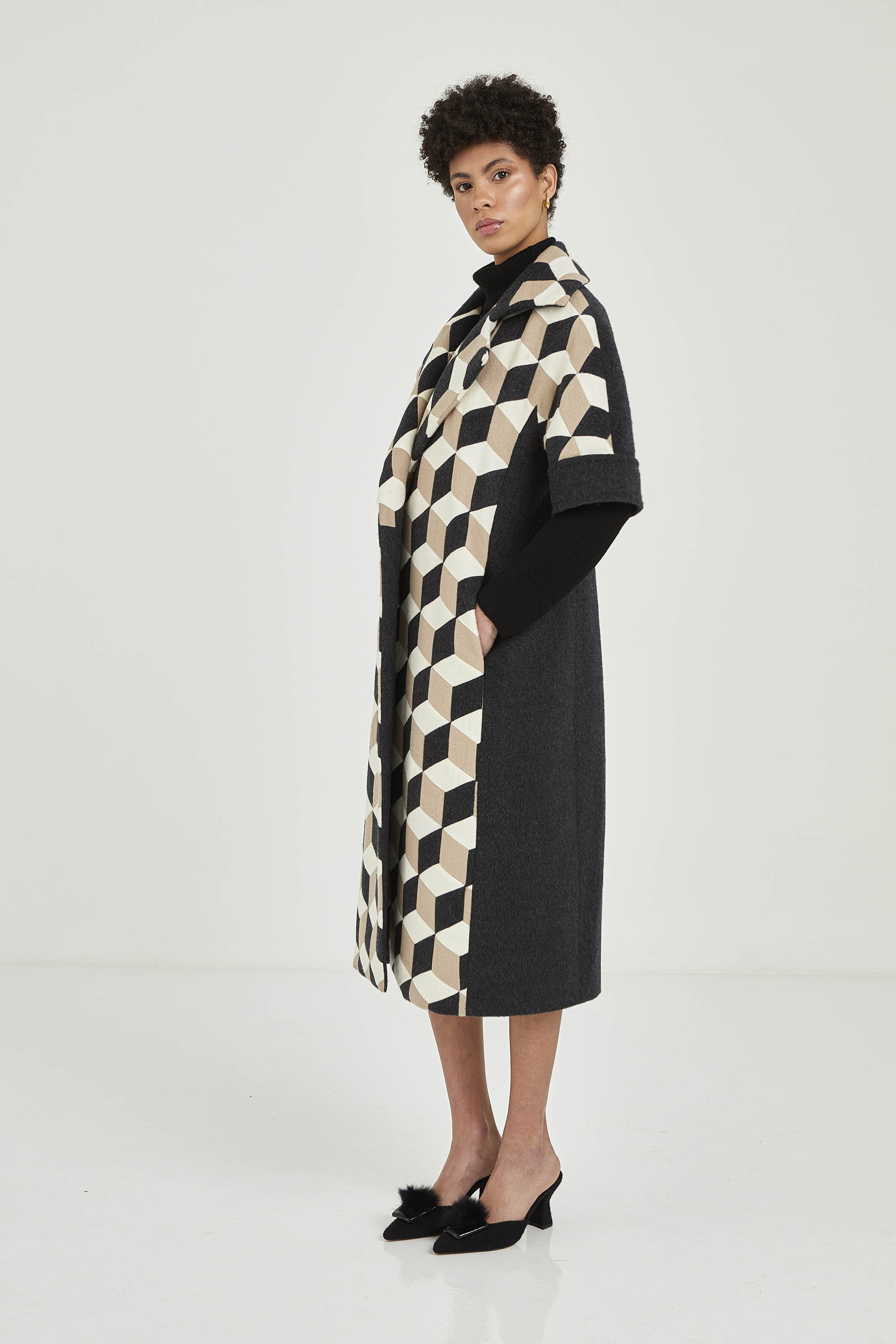 Cuboid Charcoal Handcrafted Coat | One of a Kind