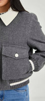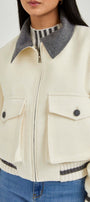 The jacket is crafted from baby alpaca. Its contrasting alpaca collar adds a touch of color, while the visible pockets reflect the Classic City style.